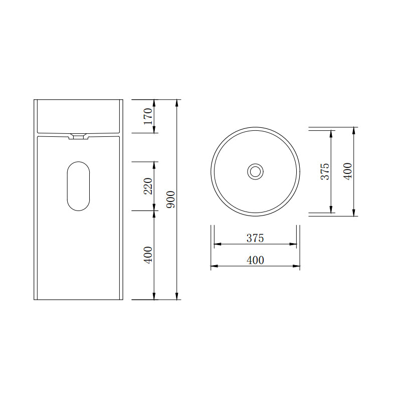Size (WxDxH): 400 x 400 x 900mm (1' 3³/₄" x 1' 3³/₄" x 2' 11⁷/₁₆")